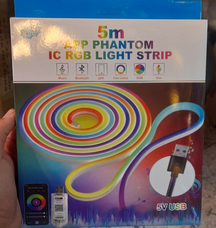 این پک ریسه فلکسی نئونی،۵ متری است و دارای ریموت و درگاه usb است که به ریسه متصل است 🌟